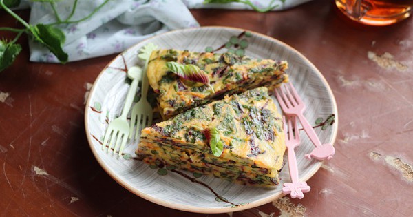 Bánh trứng rau dền đỏ là món ăn được chế biến cực kỳ đơn giản, chỉ cần nhìn qua là bạn biết cách. Bánh sau khi hoàn thành có độ mềm mịn vừa phải, thơm béo từ trứng và rau dền tươi mát, giàu dinh dưỡng.