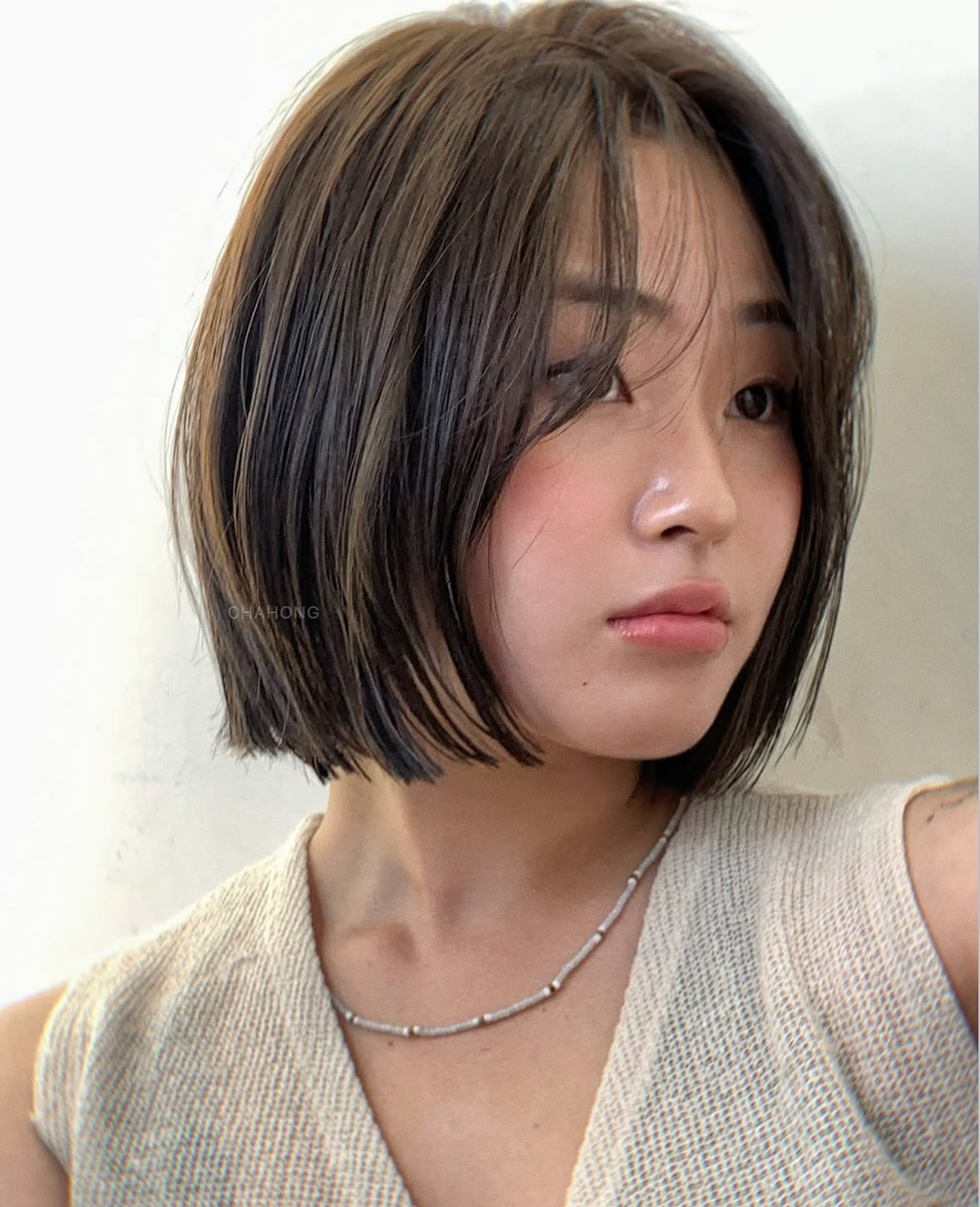 Mái thưa giúp gương mặt trông mềm mại, nhẹ nhàng và có chiều sâu hơn. Khi kết hợp với tóc ngắn, đặc biệt là bob hoặc layer, mái thưa giúp “chia tỷ lệ” khuôn mặt, khiến phần trán và cằm hài hòa hơn, từ đó giảm cảm giác tròn trịa.