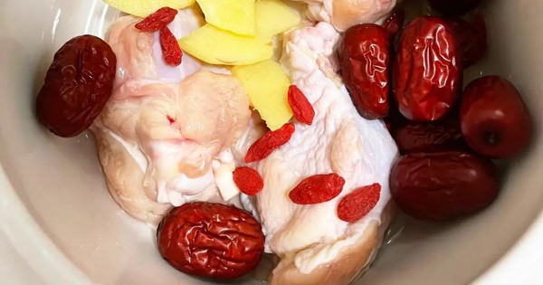 Da dễ nhăn khi thiếu ẩm và thiếu tuần hoàn. Một bát canh gà gừng táo đỏ ấm bụng sẽ hỗ trợ lưu thông dưới da, khuôn mặt hồng hào tự nhiên. Xử lý nguyên liệu để nước trong rất quan trọng. Chặt hai chiếc đùi gà thành miếng vừa ăn, trụng nhanh với rượu nấu rồi xả nước ấm cho sạch mùi.