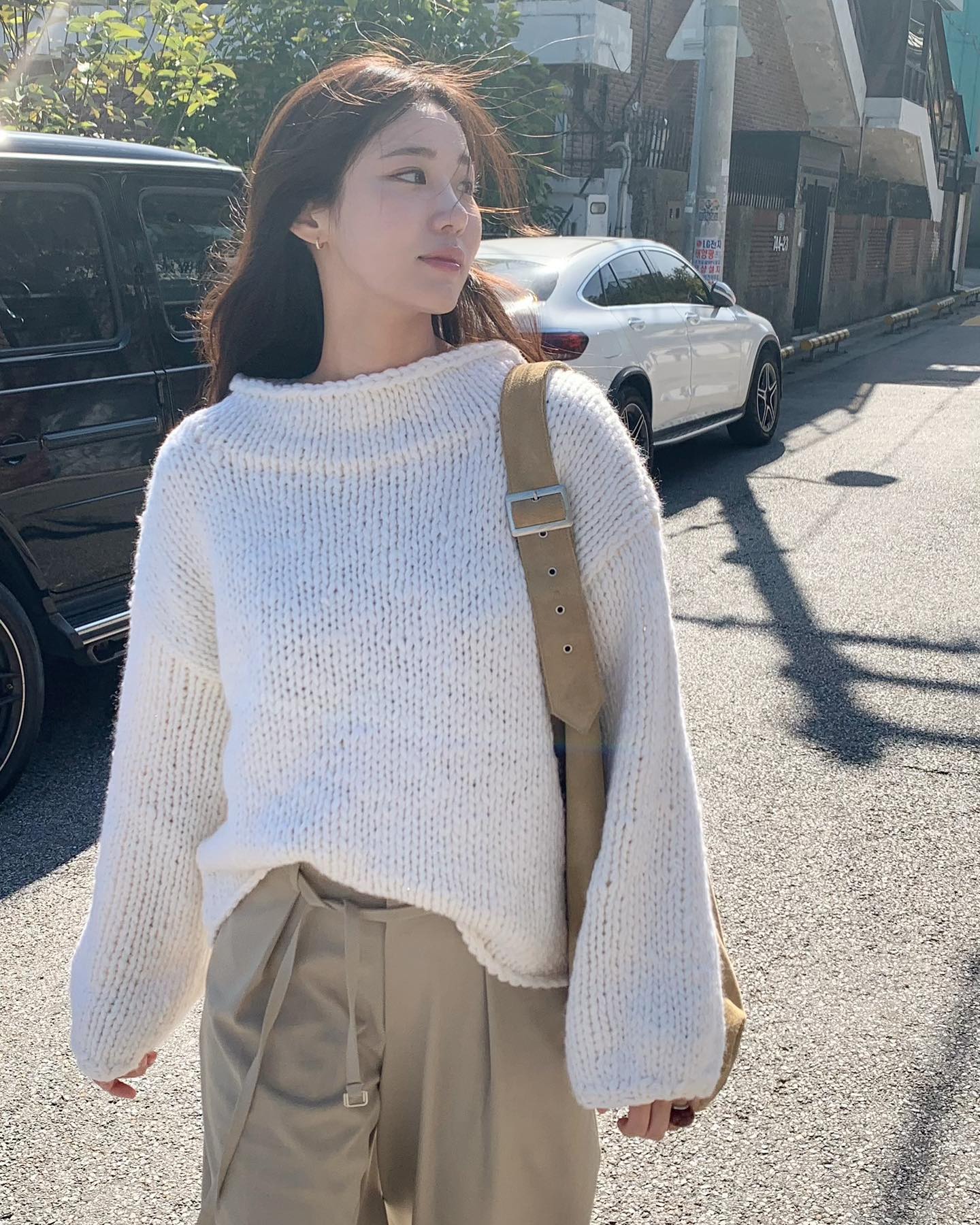 Đặc biệt, trong mùa lạnh, bạn có thể phối quần màu be với áo len trắng dáng dài, tạo nên một set đồ nhẹ nhàng nhưng đầy sức hút. Để hoàn thiện bộ trang phục, một đôi giày oxford hoặc giày boots sẽ giúp bạn thêm phần sang trọng và cuốn hút.