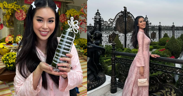 Ngày mùng 1 Tết, ái nữ của tỷ phú Johnathan Hạnh Nguyễn cũng khoe ảnh mặc áo dài trong bạch dinh sang chảnh của gia đình. Cô diện một chiếc áo dài hồng nhạt và túi xách cùng tone màu sng chảnh, nữ tính đón Tết Ất Tỵ.