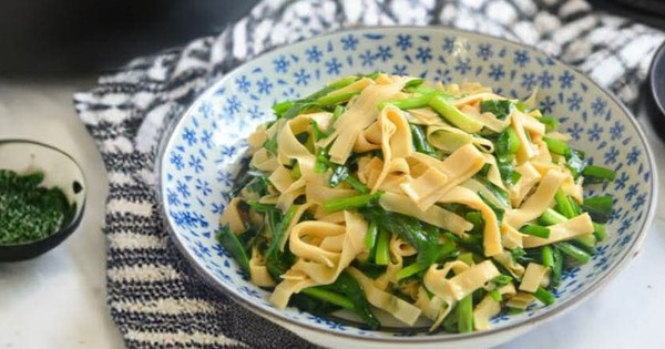 Rau hẹ xào váng đậu là món ăn đơn giản với hương vị thơm ngon. Váng đậu mềm mướt có độ ngậy ngon quyện trong hương thơm tự nhiên, thanh mát của rau hẹ, ăn rất đưa cơm lại tốt cho sức khỏe.