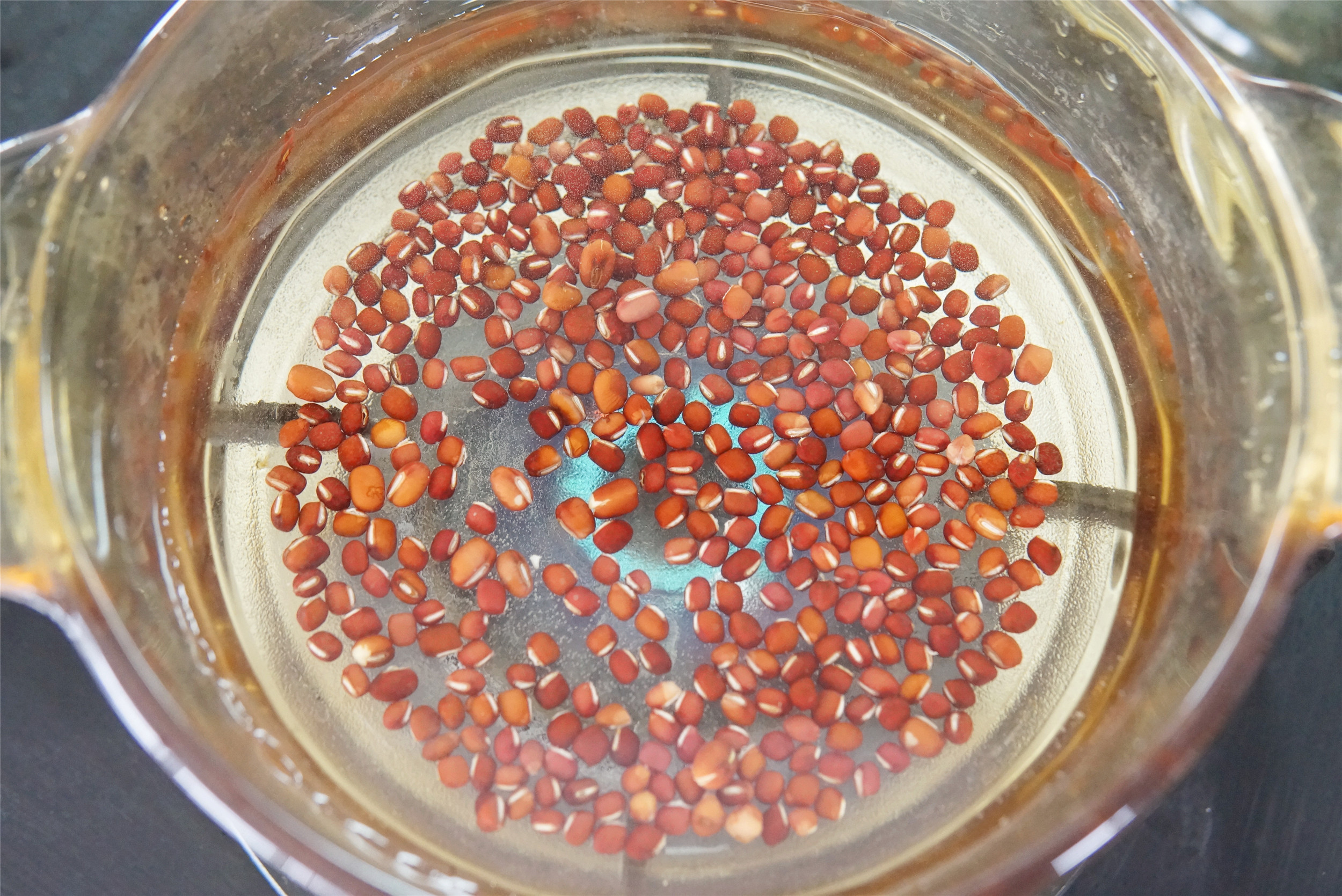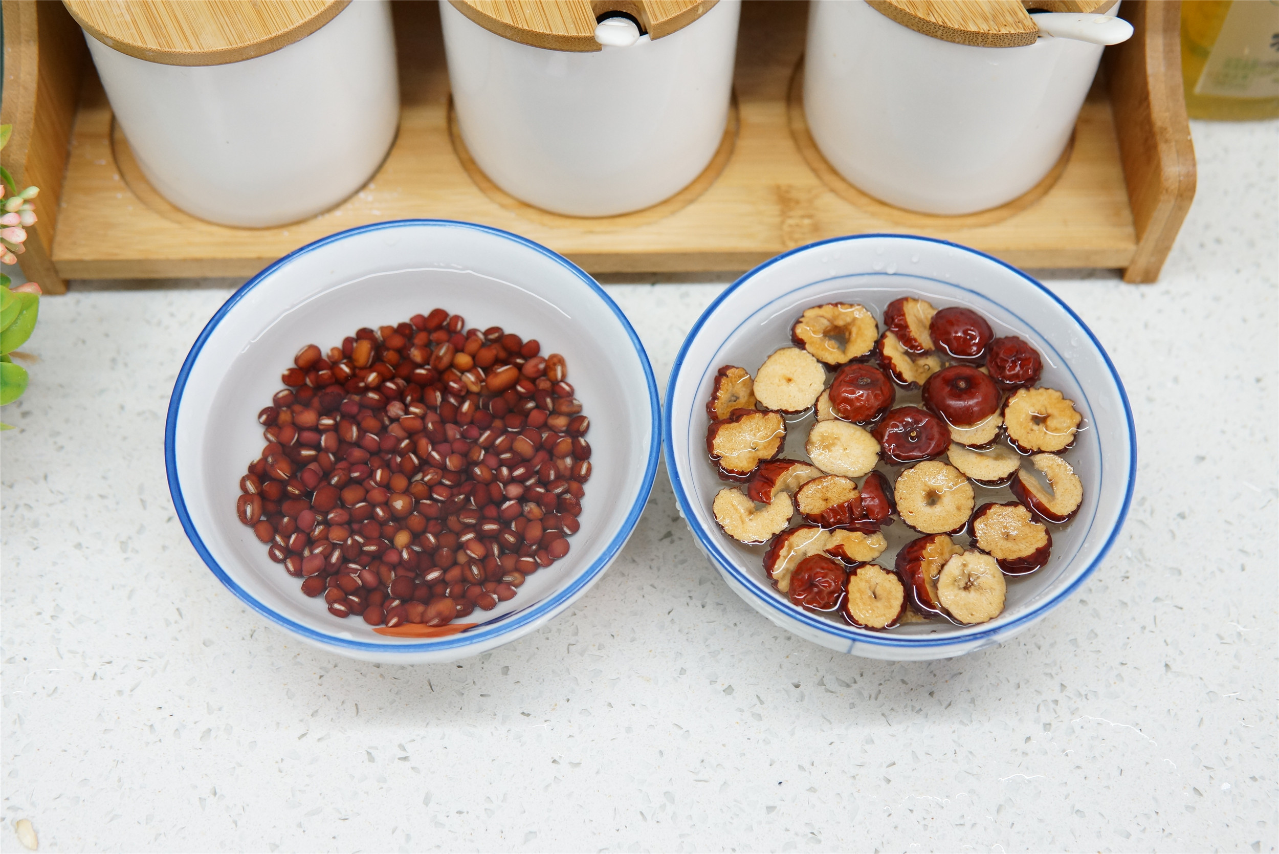 Bước 1: Rửa sạch đậu đỏ và ngâm trước khi nấu ít nhất khoảng 2 tiếng (tốt nhất bạn nên Rửa sạch đậu đỏ và ngâm trước hơn 2 tiếng (tốt nhất là ngâm từ đêm hôm trước). Táo đỏ bỏ hạt, thái lát và ngâm trong 20 phút. Cho khoảng 2 bát nước vào nồi, đổ đậu đỏ vào, đun sôi trên lửa lớn, sau đó ninh nhỏ lửa trong 15 phút.