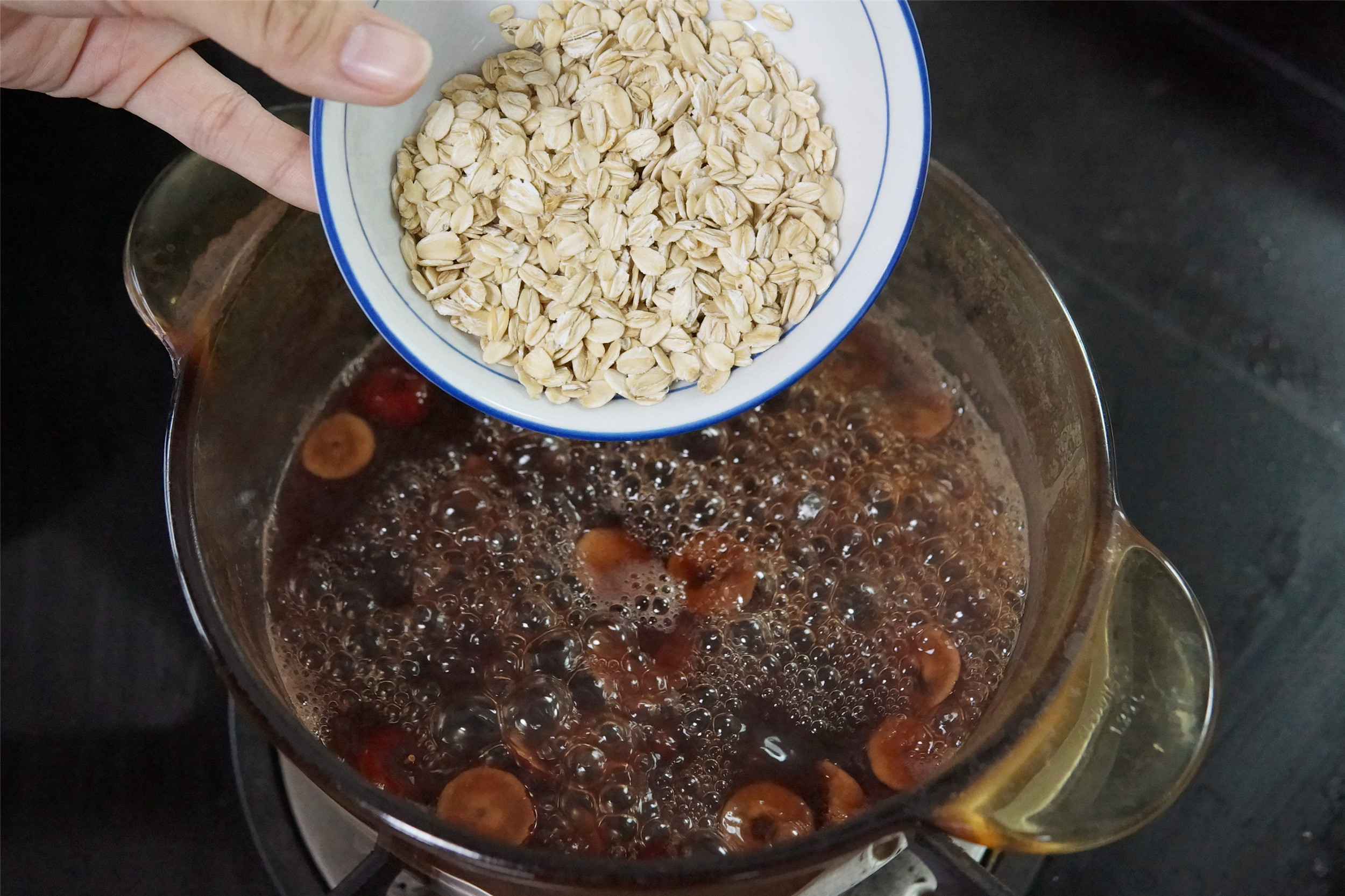 Nguyên liệu: 1/2 bát bột yến mạch (khoảng 50g), 8 quả táo đỏ (khoảng 1/2 bát, tỷ lệ đậu đỏ và yến mạch là 1:1), 1/2 bát đậu đỏ (khoảng 50g), mật ong hoặc đường nâu tùy theo nhu cầu.