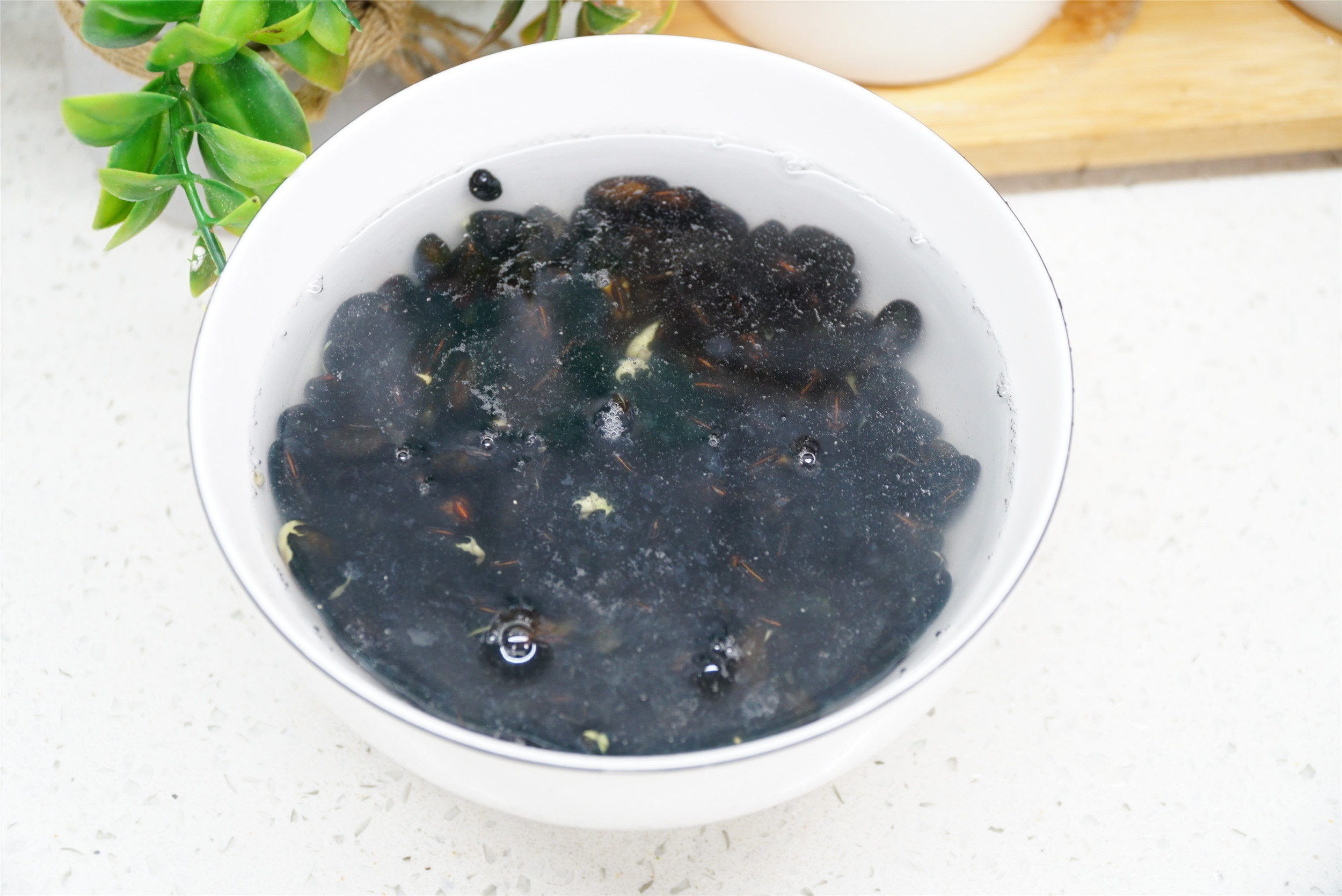 Bước 1: Ngâm đậu đen trước khi nấu trong khoảng 1 giờ sau đó rửa sạch. Táo đỏ rửa sạch và loại bỏ hạt, thái lát. Gừng gọt bỏ vỏ, rửa sạch rồi thái sợi. Cho 3 bát nước (khoảng 750ml) vào nồi, thêm đậu đen đã ngâm rồi đun sôi trên lửa lớn. Sau đó giảm lửa nhỏ và nấu trong 20 phút, cho đến khi đậu đen mềm khi bóp nhẹ.