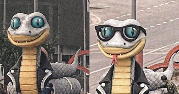 Trước những ý kiến trái chiều trên mạng xã hội, ngay trong tối ngày 21/1, đơn vị thi công ở Thái Nguyên đã lắp thêm cho linh vật rắn một cặp kính đen đầy tri thức. Thay vì là một boy phố chính hiệu thì “bé na” Phổ Yên lại nhập vai một thư sinh tri thức với bộ vest da thời thượng và chiếc kính cận đầy vẻ hàn lâm.