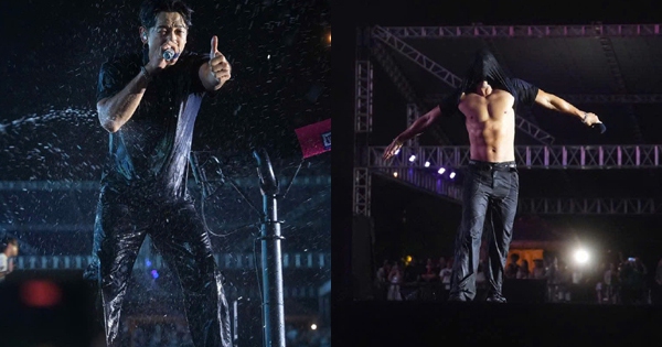 Nam ca sĩ bước ra sân khấu với vẻ ngoài khỏe khoắn, phong thái tự tin và những bước nhảy mạnh mẽ đặc trưng. Suốt 30 phút biểu diễn, anh liên tục khiến khán giả phấn khích khi kết hợp vũ đạo cùng hiệu ứng nước – yếu tố vốn đã gắn liền với tên tuổi Bi Rain tại các sân khấu ngoài trời.