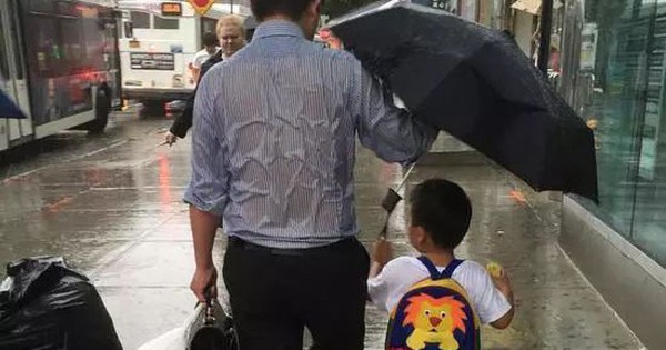 Mới đây, một bức ảnh chụp 2 bố con người Trung Quốc đã thu hút sự chú ý của cộng đồng mạng, khiến người xem không khỏi xúc động. Trong bức ảnh, người cha đang bước đi dưới cơn mưa lớn, người ướt sũng, nhưng trên tay ông vẫn cầm một chiếc ô duy nhất, giang ra để che cho đứa con đứng gần bên cạnh.