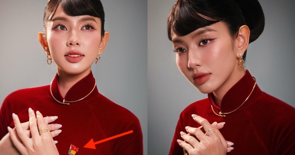 Phụ kiện mà người đẹp lựa chọn cho bộ áo dài nhung này đầy sang trọng, bộ khuyên tai, kiềng cổ và nhẫn vàng thanh lịch, nhưng điểm nhấn thu hút lại chính là chiếc huy hiệu 80 năm Quân đội nhân dân Việt Nam. Nàng Hoa hậu không chỉ diện đúng dress code của chương trình mà còn thể hiện sự tinh tế và đúng với tinh thần “Việt Nam tôi đó”.