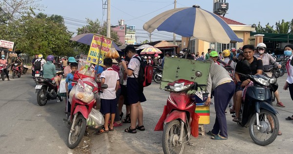 Rất đông trẻ nhỏ mua đồ ăn bày bán trước cổng trường