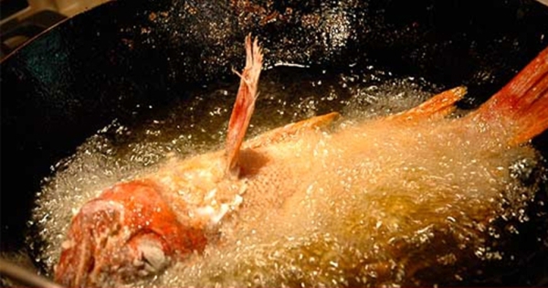 – Đợi dầu nóng già mới cho cá vào, chiên lửa vừa, không đảo cá quá sớm.