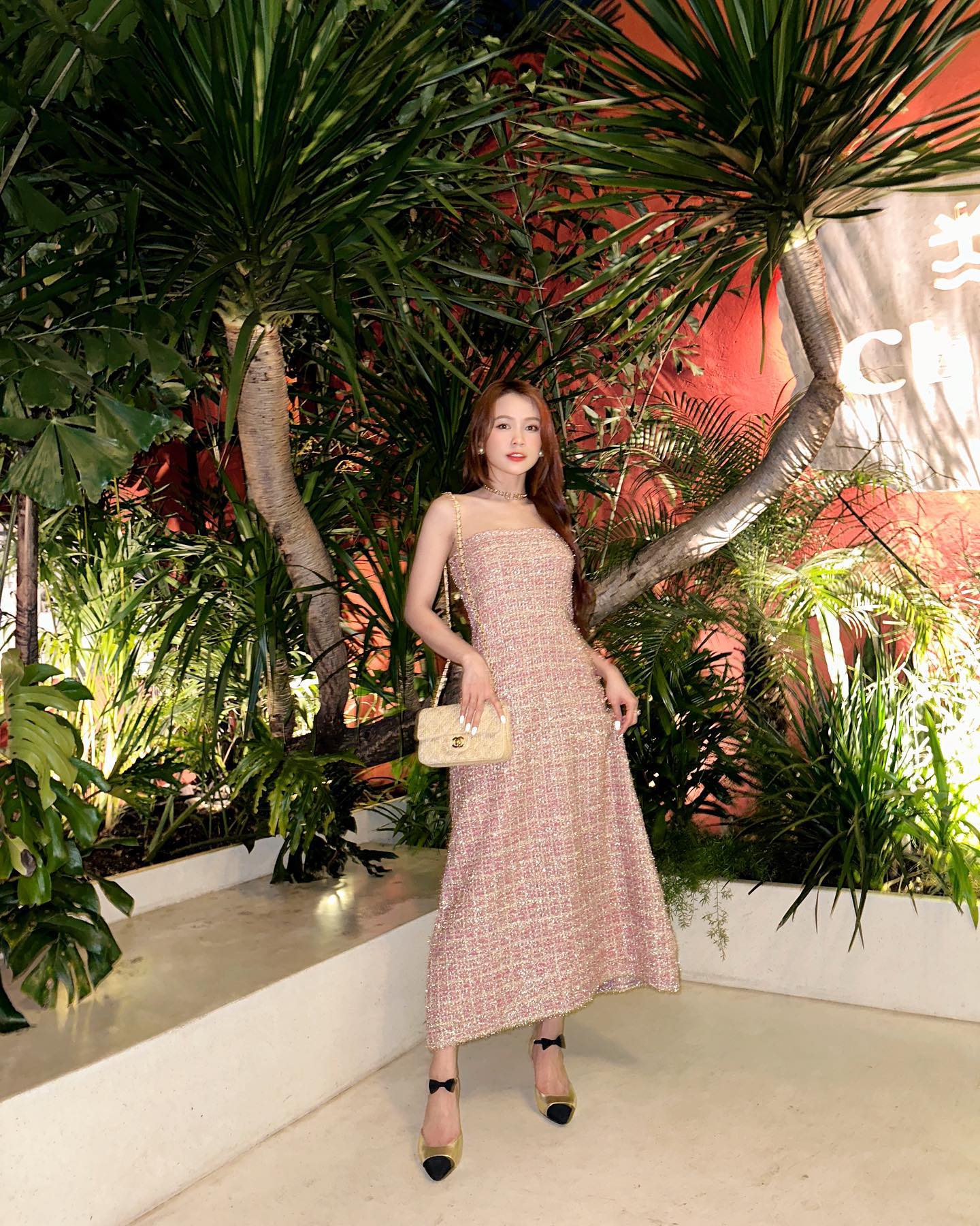 Quý cô sở hữu chiều cao khiêm tốn vẫn có thể chinh phục xuất sắc váy dáng dài. Sam đã chứng minh điều này với những set đồ tuyệt xinh. Sam biến hóa với váy trắng tao nhã hay váy vải tweed ngọt ngào, yêu kiều.
