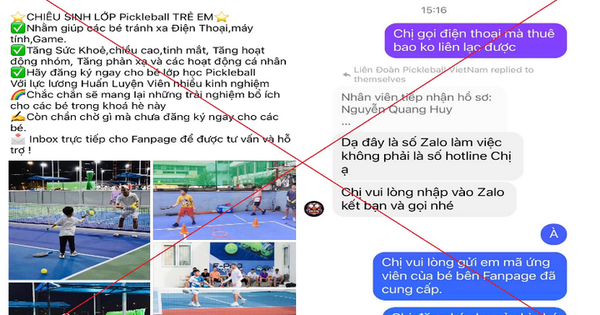Trước đó, chị H. (trú tại Hà Nội) có nhu cầu đăng ký cho con học pickleball (đánh bóng nhựa). Chị H. tìm hiểu trên mạng và liên hệ tài khoản facebook “Liên đoàn pickleball Việt Nam”.
