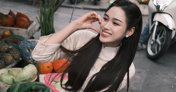 Hoa hậu Đỗ Thị Hà diện áo dài trắng họa tiết đi chợ Xuân những ngày cận Tết. Cô mặc áo dài lụa, kiểu dáng suông, tông màu nền nã.