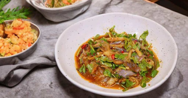 Thành phẩm món cà tím trộn rau mùi chua cay