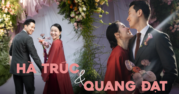 Về phần 2 nhân vật chính, cô dâu Hà Trúc cực kỳ xinh đẹp và rực rỡ trong áo dài đỏ, đeo trang sức từ thương hiệu đắt đỏ. Còn chú rể Quang Đạt mặc vest màu xám đậm, thắt cà vạt màu đỏ tệp với áo dài và nơ bó hoa cưới. Từ ánh mắt đến nụ cười của cặp đôi đều rạng ngời vẻ hạnh phúc, khiến ai nhìn cũng phải mỉm cười trong vô thức.