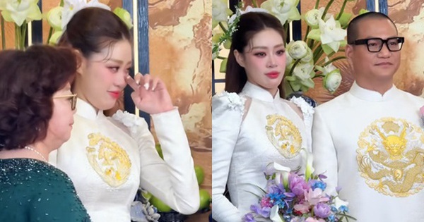 Khi vừa mới được mẹ dẫn ra nơi làm lễ, nàng hậu đã rưng rưng nước mắt, tới khi được mẹ ôm và trao tay cho ông xã Nguyễn Long thì cô bật khóc.
