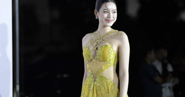 Hoa hậu Việt Nam 2020 Đỗ Thị Hà nổi bật trong sắc vàng của đầm dạ hội có những đường cắt xẻ táo bạo.