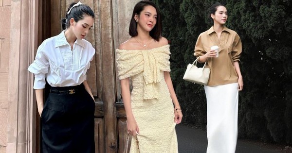 Nếu đi du lịch ở những nơi có thời tiết se lạnh, chị em có thể tham khảo set váy dài tay trên của Quỳnh Lương. Mẫu váy này cũng phù hợp để áp dụng trong mùa thu. Quỳnh Lương hoàn thiện bộ cánh bằng đôi giày cao gót mũi nhọn, từ đó giúp outfit thêm sang trọng và tôn dáng.