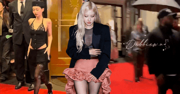 Không hề kém cạnh người chị, Rosé xinh ngất ngây, không còn nhạt nhòa khi mặc áo xuyên thấu đen phối cùng chân váy mullet sang chảnh, khoác ngoài blazer của Sant Laurent. Thiết kế váy ngắn cùng phần vạt dài phía sau, khi được phối cùng giày cao gót đã giúp giọng ca chính BLACKPINK khoe triệt để đôi chân thon dài miên man. Thậm chí, nhiều người hâm mộ còn thích bộ cánh này hơn trang phục cô diện tại thảm đỏ chính.
