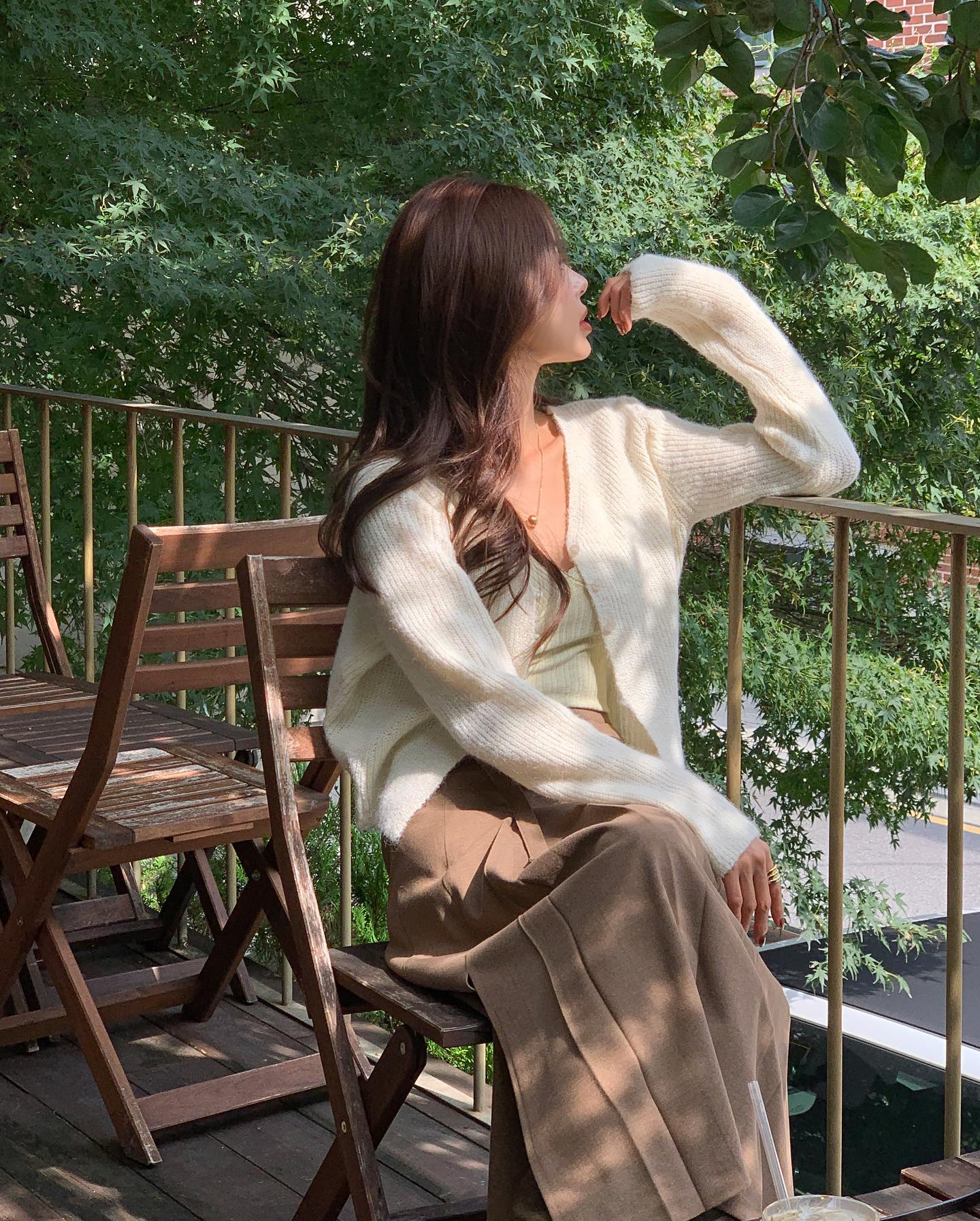 Gam màu trắng ngà đi cùng váy tông pastel như hồng phấn, xanh nhạt hay nâu sữa mang đến cảm giác dịu mắt và cực kỳ hợp cho những buổi café cuối tuần. Nếu muốn set đồ trông hiện đại hơn, bạn có thể thêm thắt lưng mảnh hoặc túi xách nhỏ có chi tiết kim loại sáng.