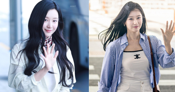 Vừa xuất hiện tại sân bay để khởi hành đi Thượng Hải, Kim Ji Won lại khiến fan “phát sốt” vì quá xinh đẹp. Outfit mà nữ diễn viên chọn hôm nay rất basic: Áo sơ mi sọc mảnh màu kem nhạt được sơ vin nhưng không đóng cúc, tạo điểm nhấn cho vòng eo mà vẫn giữ sự thoải mái. Layer bên trong là áo thun trắng cổ tròn. Cô mix cùng quần jeans ống loe giúp hack chân dài và mang lại vibe retro hiện đại. Điểm nhấn của set đồ này là chiếc khăn turban quàng cổ màu đổ nổi bật.