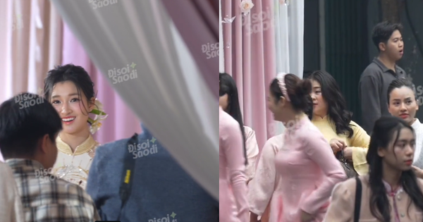 Gây chú ý, cô dâu Phương Nhi chọn chiếc áo dài trắng có họa tiết tỉ mỉ để xuất hiện trong ngày trọng đại. Nàng hậu búi tóc gọn, trang điểm nhẹ nhàng nhưng cũng đủ khoe nhan sắc “thần tiên tỷ tỷ” của mình. Trong lúc chờ nhà trai sang, Phương Nhi tranh thủ chụp ảnh bên trong nhà và có thể thấy ánh mắt hạnh phúc của nàng hậu trong ngày đặc biệt hôm nay.