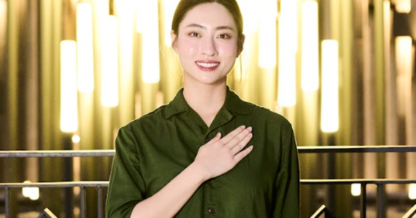 Hoa hậu sinh năm 2000 đã chuẩn bị trang phục nữ bộ đội thể hiện sự kính trọng và tưởng nhớ những chiến sĩ anh dũng với tinh thần chiến đấu kiên cường của bộ đội Việt Nam.