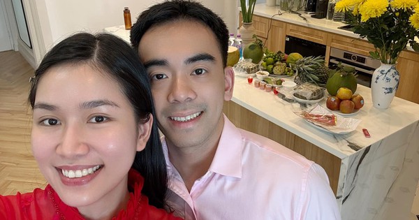 Năm thứ hai Á hậu Phương Anh cùng chồng đón năm mới ở nhà riêng. Cặp đôi chuẩn bị mâm cỗ chay với bánh chưng và hoa quả.