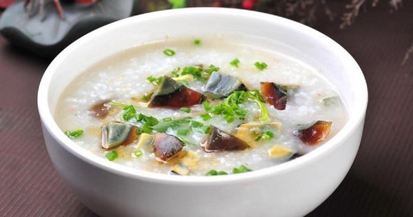Đây là một sự kết hợp các nguyên liệu cổ điển khi nấu cháo. Việc bạn tận dụng cơm nguội là sáng tạo, nhưng khi chọn nguyên liệu thực phẩm nấu cùng có thời gian chín ngắn cũng là một cách giúp bạn vẫn có món cháo ngon, giàu dinh dưỡng mà không mất quá nhiều thời gian. Ngoài ra nếu bạn không có cơm nguội, hãy tận dụng chiếc nồi ủ chậm. Bạn chỉ việc cho gạo vào nồi nước, sau đó đun sôi. Tiếp theo cho vào nồi ủ chậm để đến sáng là gạo đã được ninh nhừ. Thao tác tiếp theo vào buổi sáng đơn giản chỉ cần chuẩn bị trong 10 phút, thêm trứng bắc thảo và thịt.