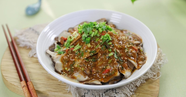 Vớt nấm ra, cắt thành lát mỏng hoặc sợi dài vừa ăn. Xếp nấm ra đĩa, rưới đều phần sốt đã pha, trộn nhẹ tay để nấm ngấm gia vị.
