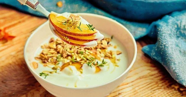 Như vậy, chỉ cần thái mỏng đào vàng ngọt ngào và xếp lên trên lớp sữa chua nguyên chất mịn… là bạn đã có món ăn cực bắt mắt. Vị giòn tan của ngũ cốc, hương vị bùi bùi của hạt dẻ cười, và vị ngọt thanh dịu từ mật ong tạo nên một món tráng miệng lành mạnh xứng tầm nhà hàng. Một món ăn sáng nhẹ nhàng, sảng khoái mà bạn có thể thưởng thức chỉ trong 3 phút.
