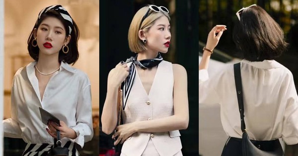 – Nếu thích tóc dài, hãy uốn nhẹ hoặc búi tóc kiểu Pháp, buộc nửa đầu, tết thấp – vừa điệu vừa tinh tế