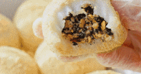 4. Để gói bánh, bạn lấy một lượng bột vừa đủ, cán mỏng rồi cho nhân vào giữa. Vo tròn bánh lại sao cho nhân được bọc kín hoàn toàn. Cuối cùng, lăn bánh qua bột đậu nành rang chín hoặc bột dừa để tạo lớp áo ngoài thơm ngon.