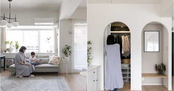 Cánh cửa trượt nguyên bản của tủ đựng đồ được Umi biến thành hai cánh cửa hình vòm với công năng khác nhau khiến không gian trông nhẹ nhàng hơn.