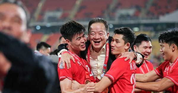 Tối 5/1, chiến thắng rực rỡ của ĐT Việt Nam trên đất Thái, trong trận lượt về Chung kết AFF Cup 2024 giữa ĐT Việt Nam và ĐT Thái Lan đã khiến toàn bộ người hâm mộ trên khán đài Rajamangala vỡ òa. Trong khoảnh khắc thăng hoa đó, đội trưởng đội tuyển Việt Nam – Duy Mạnh ngay lập tức lao ra khu vực khán đài, mừng rỡ ôm chầm lấy một người đàn ông và nói: “Con bế bác vào nhá”. Người đàn ông đó không ai xa lạ, chính là Bầu Hiển (doanh nhân Đỗ Quang Hiển), chủ tịch Ngân hàng TMCP Sài Gòn Hà Nội (SHB).