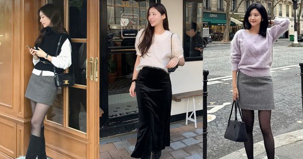 Với những item khá đơn giản như áo len xám, blazer vải dạ, chân váy trắng, chị em sẽ có được bộ trang phục trẻ trung. Đôi loafer màu đen giúp cả tổng thể trang phục thêm thời thượng. Khi kết hợp giày bệt với chân váy ngắn, chị em sẽ không lo bị “dìm” dáng.