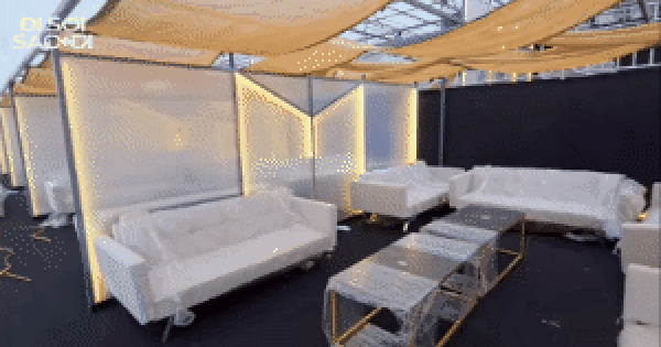 Những hàng ghế được sắp đặt ngay ngắn, đều tăm tắp. Mọi thứ được mua mới, bọc cẩn thận tạo nên hiệu ứng thị giác cực ấn tượng. Khán đài được bố trí tỉ mỉ, chỉn chu đến từng chi tiết.
