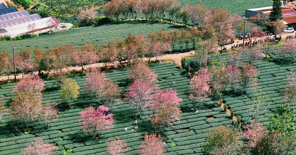 Những ngày giáp Tết, hàng nghìn gốc mai anh đào tại đồi chè Cầu Đất, Đà Lạt (Lâm Đồng) bắt đầu khoe sắc rực rỡ. Ảnh: Cậu Dũng.