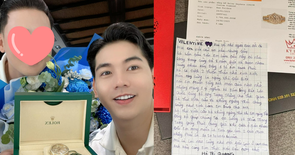 Vào ngày 14/2, diễn viên Hà Trí Quang hạnh phúc flex món quà khủng nhận được từ bạn trai Thanh Đoàn chính là chiếc đồng hồ đến từ thương hiệu nổi tiếng trên thế giới. Anh hào hứng chia sẻ: “Nóng hổi. Không thể để lâu hơn mới khoe. Quà 14/2 được chú rể nhỏ tặng quá khủng. Chiếc đồng hồ Rolex nạm full kim cương mẫu mới nhất năm 2025. Anh cảm ơn chú rể nhỏ nhiều. Mãi yêu”. Dù không chia sẻ cụ thể giá của đồng hồ nhưng netizen cho rằng số tiền chắc chắn không hề nhỏ.