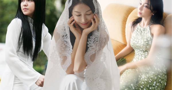 Bộ váy cuối cùng là thiết kế ren trắng cổ điển kết hợp cùng khăn voan dài phủ đầu đầy lãng mạn – hình ảnh gần gũi nhất với concept cô dâu truyền thống mà người Hàn yêu thích. Chất liệu ren với họa tiết hoa nổi tinh xảo, phần thân trên ôm sát và chân váy xòe rộng cổ điển.