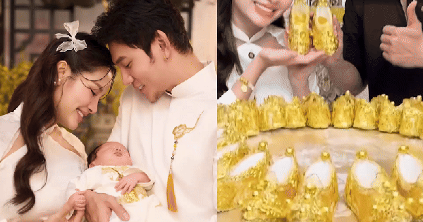 Cặp đôi đã thuê một đơn vị riêng tổ chức ngày đặc biệt cho con, tỉ mỉ trong từng chi tiết nhỏ như may riêng bộ áo dài cho bé Loka. Ngoài ra trong bữa tiệc đầy tháng còn có bộ gốm sứ chạm khắc tinh xảo được thiết kế dành riêng cho nhóc tỳ. Netizen cho rằng chi phí mà cặp đôi làm tiệc đầy tháng cho nhóc tỳ chắc chắn không hề nhỏ. Sau khi tổ chức ngày đặc biệt cho con trai, vợ chồng Phương Trinh Jolie còn dành tặng 12 đôi hài màu vàng bắt mắt, được chuẩn bị công phu cho những khách hàng với mục đích “nhả vía” có em bé.