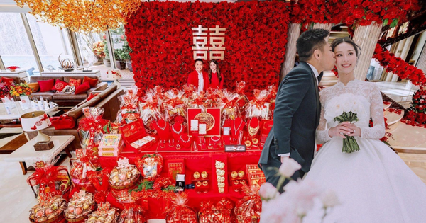 Đám cưới chính thức diễn ra vào tháng 11/2022 tại Hongkong (Trung Quốc). Gia đình chú rể mang sính lễ sang, gồm bánh kẹo cao cấp, trái cây nhập khẩu, vòng tay rồng phượng, trang sức và đồng hồ xa xỉ. Không gian lễ cưới tại biệt thự trị giá 100 triệu NDT (hơn 370 tỷ đồng) được trang trí tông đỏ truyền thống, hành lang và cầu thang phủ hoa hồng đỏ, phòng khách rộng lớn với đèn chùm màu cam, bức tường hoa lớn với chữ Hỷ dựng chính giữa.