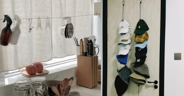 Ví dụ, một dây phơi quần áo cố định vào cửa sổ bếp có thể dùng để đựng một số vật dụng nhỏ trong bếp. Hoặc bằng cách gắn dây phơi quần áo vào phía sau cánh cửa, chúng ta có ngay một nơi để để cất mũ vô cùng gọn gàng.