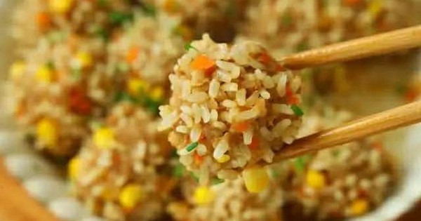 Món ăn dưới đây là sự kết hợp hoàn hảo giữa thịt băm và gạo nếp và những loại rau củ sắc màu như ngô ngọt, cà rốt. Sắc vàng cam quyện vào nước sốt thịt băm, trông thật hấp dẫn. Gạo nếp thấm đẫm vị thơm ngon của thịt, trở nên trong suốt. Ngô và cà rốt không chỉ làm tăng thêm màu sắc mà còn mang đến hương vị thanh mát, khiến món ăn không hề bị ngấy.