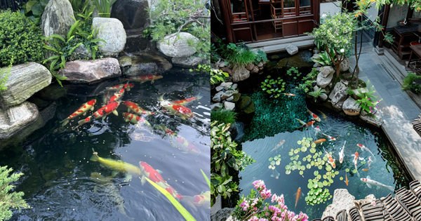 – Có cá bơi lội, nước được thay hoặc lưu thông nhẹ: Nước động ở mức vừa phải giúp ao không tù đọng, không sinh rêu bẩn.
