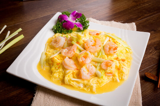 Bước 3: Sau khi tôm và rau hẹ đã chín, bạn cho trứng bác vào, đảo đều. Cuối cùng, dọn món ăn ra đĩa là có thể thưởng thức món ăn thơm ngon này.