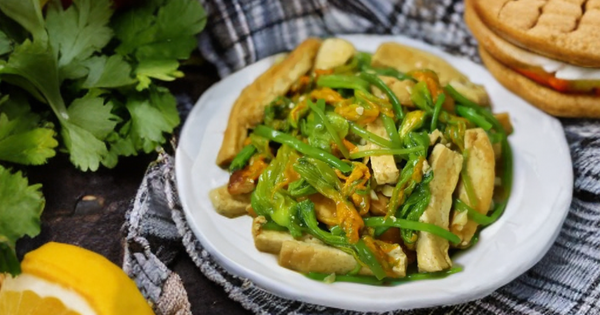 Đơn giản nhất người ta sẽ về sơ chế rồi xào cùng tỏi hoặc cầu kỳ hơn thì “tắm” trong lớp bột rồi đem chiên giòn hoặc nấu canh cùng thịt nạc. Khoảnh khắc cánh hoa vàng óng này xuất hiện, cả đĩa thức ăn bừng sáng. Hôm nay chúng ta hãy kết hợp hoa bí đỏ với một nguyên liệu thân thuộc – đậu phụ.